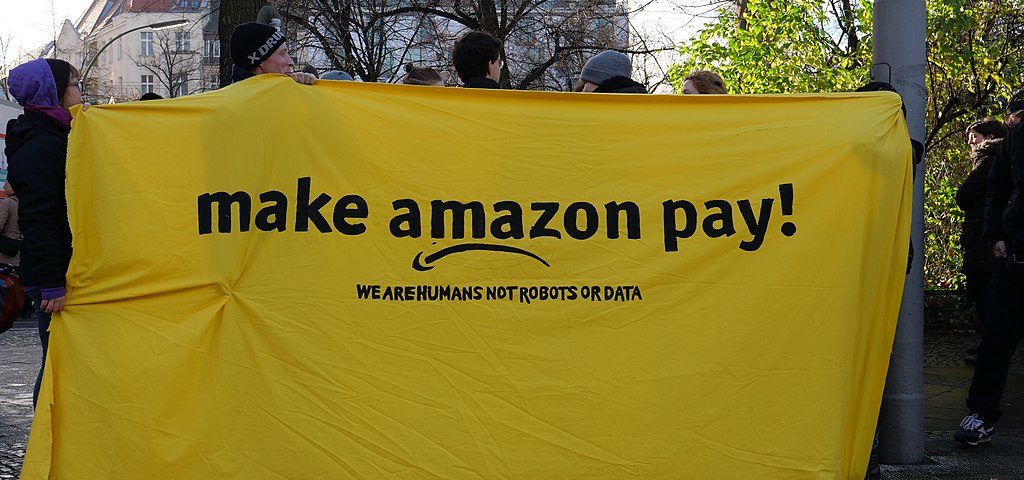 Dies erreicht er vor allem durch Abstützung der Ausbeutung seiner Arbeitnehmer, die in den USA weitgehend ohne Arbeitsschutz in seinen Warenlagern schuften, und selbst dann zur Arbeit erscheinen müssen, wenn sie krank sind. Unfälle von Arbeitnehmern werden vertuscht, und das Klima bei Amazon heute ist vergleichbar mit der Lage der Industrialisierung zu Beginn des zwanzigsten Jahrhunderts. Das Verbot, sich gewerkschaftlich zu organisieren und Betriebsräte zu wählen gehört dazu ebenfalls ins Bild, wie die trickreiche Weigerung von Amazon, Steuern zu zahlen, und von allen „A“-Sozialen Medien gleichermaßen erfolgreich betrieben.