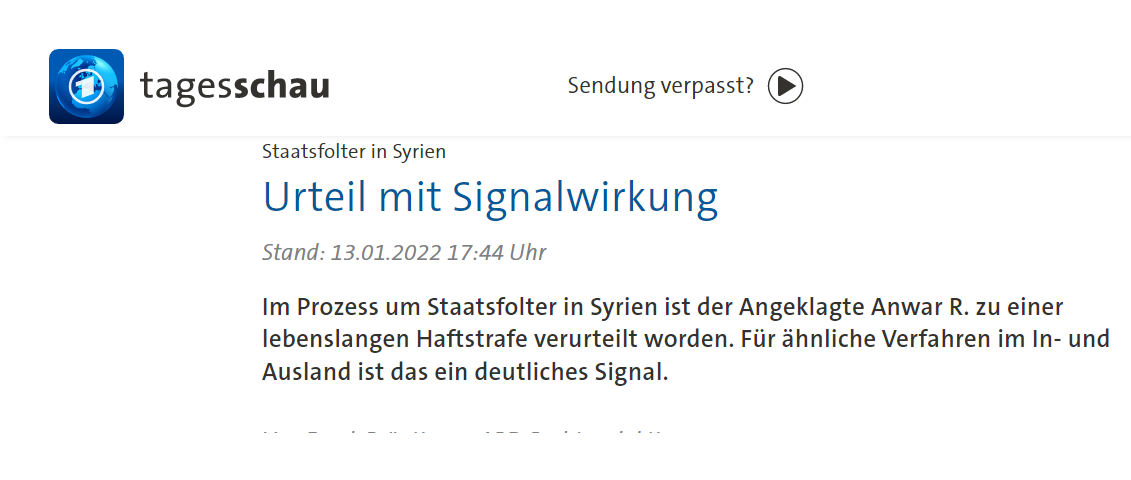 ARD in „Tagesschau“ und „Tagesthemen“ und das ZDF in „heute“ und „heute journal“ berichteten ausführlich über das Koblenzer Urteil gegen den syrischen Geheimdienst-Offizier, Mörder und Folterer Anwar Raslan. Aber zwischen den Berichten der beiden öffentlich-rechtlichen Anstalten gab es einen gewaltigen Unterschied – und nicht zum ersten Mal: