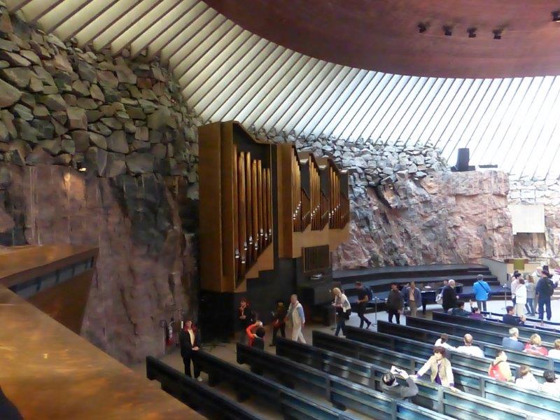 Quer über die Ostsee schippert uns die „Albatros“ dann nach Helsinki, eine lebendige Metropole Finnlands, eine Stadt, die sich mit ihren über 600000 Einwohnern rund um den Hafen schlängelt. In Helsinki hätten 1940 die Olympischen Spiele stattfinden sollen, die aber wegen des 2. Weltkrieges auf 1952 verschoben wurden. Das Olympiastadion mit dem 72 m hohen Aussichtsturm und einem Denkmal des finnischen Laufwunders Paovi Nurmi erinnern daran. Auch Finnland hat eine gemeinsame Vergangenheit mit Russland. Im 2. Weltkrieg mussten sie sich gegen die Übermacht der Roten Armee zur Wehr setzen und konnten den Krieg, in dem Tausende von Finnen und Russen den Tod fanden, vorzeitig beenden. Zu den Sehenswürdigkeiten zählt der an einer Meeresbucht gelegene Sibelius-Park zu Ehren des finnischen Nationalkomponisten gleichen Namens. Sehenswert u.a. auch die Felsenkirche, ein spektakuläres Werk. Das Kircheninnere ist eingebettet in einen Felsen, der sich 12 Meter über der Straße erhebt.