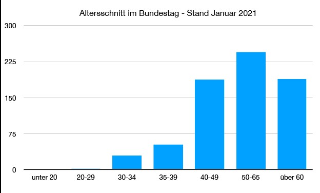 Im Bundestag liegt der Altersdurchschnitt wie in Stein gemeißelt bei 50 Jahren.