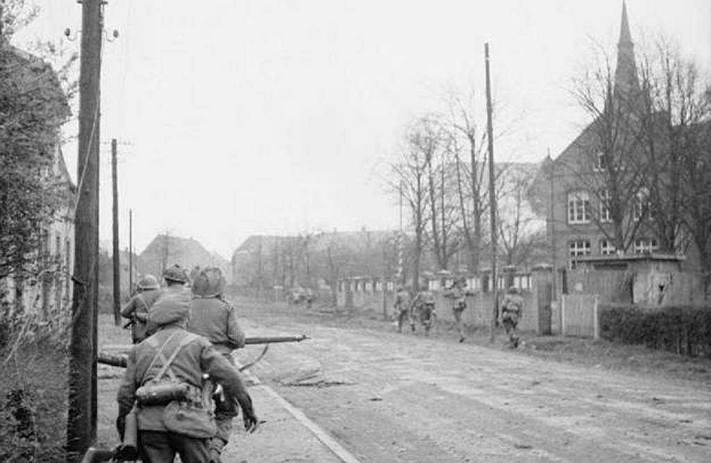 Es war Karfreitag 1945, als die deutschen Soldaten in Richtung Münster weiter marschierten. Plötzlich,als sie fort waren, wurde es ganz still auf der Hauptstraße. Während wir zu Mittag aßen, klopfte es an der Tür und der Leitungsaufseher Obermeier steckte den Kopf herein und verkündete: “Die Amis kommen heute Nacht”.
