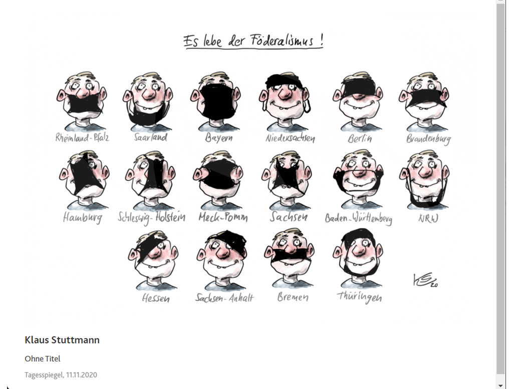 Die Rückblende – sie gibt es seit vielen Jahren, veranstaltet von Rheinland-Pfalz und den deutschen Verlegern in Zusammenarbeit mit der Bundespressekonferenz- aufs Corona-Jahr 2020 bedarf eigentlich gar keiner weiteren Zeilen. Wer gern Fotos aus Meisterhand und Karikaturen von spitzer Feder bester Karikaturisten sich anschaut, sollte sich ein paar Minuten Zeit nehmen, um diese Wanderausstellung von den besten Fotos und Karikaturen sich anzuschauen. Es lohnt sich der Blick zurück, er ist zugleich eine kurze Wanderung durchs Jahr. Gleich ob Trump, der frühere US-Präsident aufgespießt wird, oder die Ministerpräsidenten-Konferenz, ob Söder oder Merkel. Im Bonner Haus der Geschichte ist diese Ausstellung zu sehen, kostenlos. Rund 60 Arbeiten von -foto-Journalisten und Zeichnern sind ausgestellt, sie dokumentieren und interpretieren die Themen des Jahres. Corona steht im Mittelpunkt, Bilder von Krankenhäusern, leeren Plätzen in Theatern, eine geschlossene Grenze, Menschen, die auf Distanz gehen müssen, um sich und andere nicht zu infizieren.