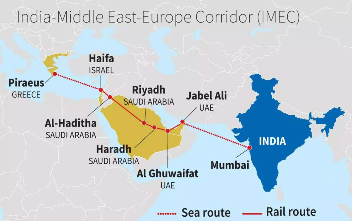 - Im geopolitischen Wettlauf der Systeme plant der Westen eine Konkurrenz zur chinesischen Seidenstraßen-Initiative. Ihr Name ist Initiative Global Gateway. Darin enthalten ist auch der „India-Middle East-Europe Economic Corridor”. Das ist eine westliche Initiative für einen “Straße”, die Seewege und Landverbindungen kombiniert, vgl. Karte