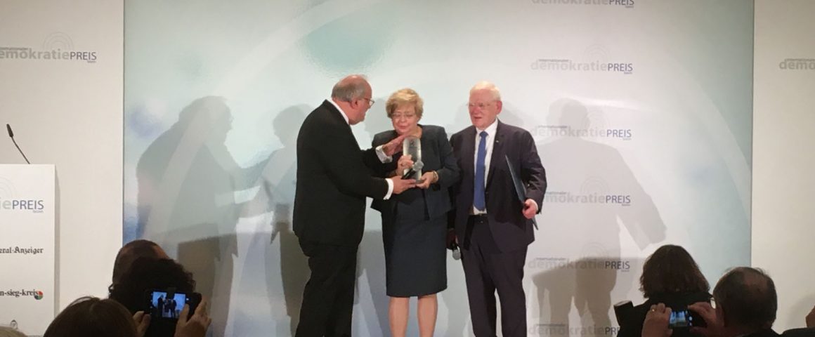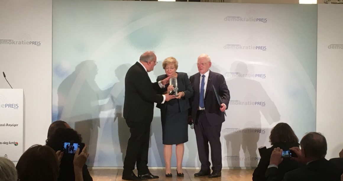 Was für eine Frau! In Bonn wurde ihr wegen ihres aufrechten Ganges, ihres Einsatzes für wichtigste demokratische Grundsätze, der Demokratiepreis verliehen. Sieben Mal wurde dieser Preis bisher vergeben, Frau Gersdorf befindet sich in bester Gesellschaft. Zur Erinnerung: der erste Preisträger war 2009 Vaclav Havel, einst Dissident in der CSSR während des Prager Frühlings, einer der Gründer der Charta 77, aktiv beteiligt am Zustandekommen des „Komitees für die Verteidigung zu Unrecht Verfolgter“, später dann der Staatspräsident des Landes. Ich habe ihn erlebt, als ich Bundespräsident Richard von Weizsäcker auf einer Reise durch die CSSR als Journalist begleiten durfte. Eine wirklich große Person der Zeitgeschichte, ein Mann mit moralischer Autorität, mit Ausstrahlung. Ihm gelang es, Gorbatschow dazu zu bewegen, ein Abkommen zu unterzeichnen, das dem Land die Souveränität sicherte und dazu führte, dass die sowjetischen Truppen das Land verließen. Ich erwähne das, weil „Gorbi“ auch in Deutschland vieles bewegt hat. Dass bei uns die Mauer fiel, ist sicher dem Einsatz der Bürgerrechtler in der damaligen DDR zuzuschreiben, aber dass er das zuließ und die Panzer sowie die Soldaten der Roten Armee-in der DDR war eine halbe Millionn stationiert- in den Kasernen beließ und kein Schuß fiel, das ist wohl sein Verdienst.