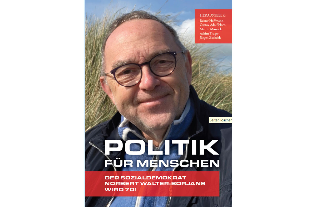 Politik für Menschen – der Sozialdemokrat Norbert Walter-Borjans wird 70! Herausgeber: Reiner Hoffmann, Gustav-Adolf Horn, Martin Murrack, Achim Truger & Jürgen Zurheide, Berlin 2022, Epubli. Das Buch ist ab dem 30.9. im Buchhandel erhältlich