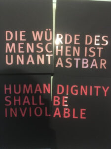 „Nie wieder“ schworen sich die ehrenhaften Männer des Verfassungskonvents auf der Insel Herrenchiemsee 1948, als Deutschland nach dem Ende der Nazi-Zeit moralisch und wirtschaftlich am Boden lag, nie wieder dürfe es eine nationalsozialistische Diktatur geben, ohne Freiheit des Menschen, gerichtet gegen Juden und gegen alle, die anderer Meinung waren und nichtarisch. Nie wieder dürfe Deutschland so tief sinken wie einst, als die braunen Herrenmenschen über Menschen in weiten Teilen Europas herrschten und Menschenrechte abschafften. Und so legten sich die Männer auf Herrenchiemsee fest auf das, was später in Artikel 1 des Grundgesetzes das Fundament des Zusammenlebens in der Bundesrepublik werden sollte: „Die Würde des Menschen ist unantastbar“.