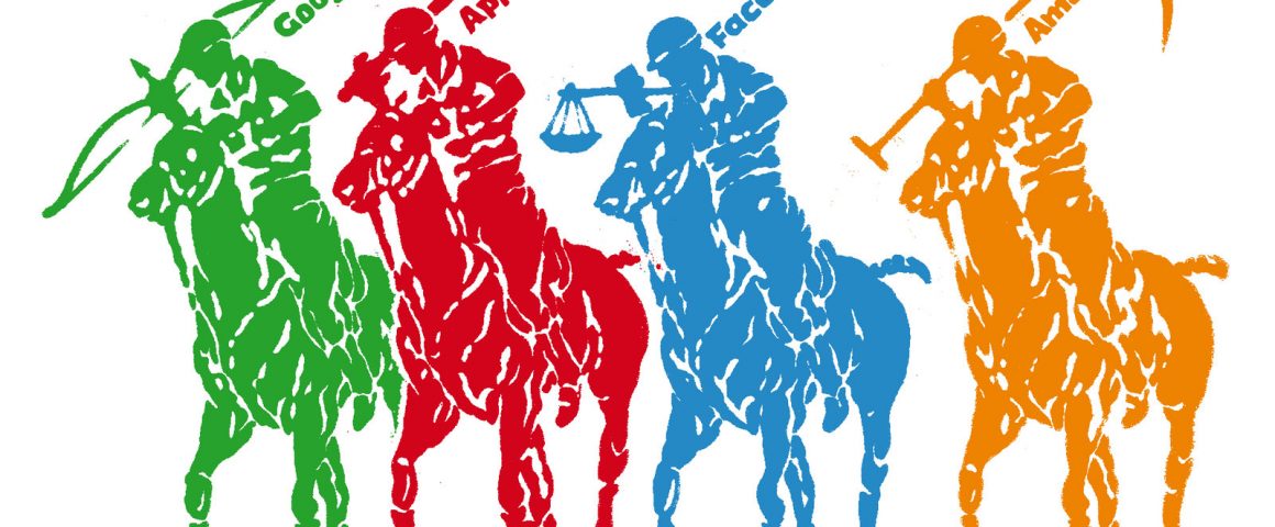 Der Internetzugang wird in der westlichen Welt von „GAFA“ (Google, Apple, Facebook, Amazon) und die „neuen Medien“ werden von „FANG“ (Facebook, Amazon, Netflix, Google) dominiert.  Mit einem Suchmaschinen-Marktanteil von knapp 86% bei der Desktop-Suche und 98% bei der mobilen Suche kontrolliert Google den Zugang zu den Netzinhalten  (SEO Summary.de).  Amazon ist mit 33 Prozent Marktanteil beim Cloud Computing (deutsch: Rechnerwolke oder Datenwolke), also bei externen Speicherplätzen, Rechen- oder Dienstleistungen (Dropbox, Netflix) der Markführer (Synergy research group April 27,2018).  Und Facebook dominiert weltweit (noch) bei den Sozialen Medien (statista Jan 26,2018).