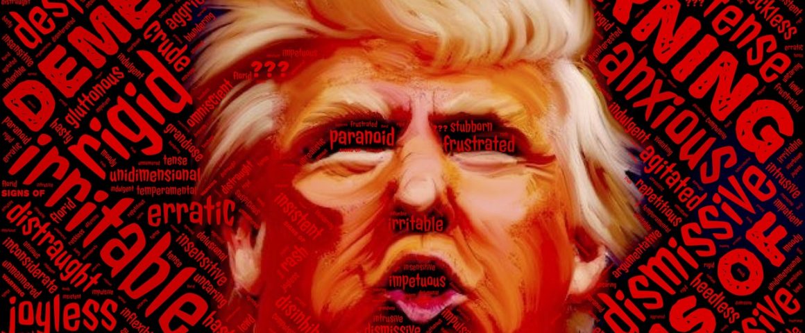 In großer Sorge haben 27 prominente Psychiater und Psychologen der USA den alltäglichen Donald Trump beobachtet und kommen einhellig zu dem Ergebnis, dass Trump eine „gefährliche mentale Beeinträchtigung“ erkennen lässt. Aufgefunden in der Wochenendausgabe der „Süddeutsche Zeitung“ auf der Seite „Wissen“, mit Zitaten aus zehn psychopathologischen Analysen der 27 einschlägigen amerikanischen Koryphäen, und der Schlagzeile: „Er ist verrückt“.