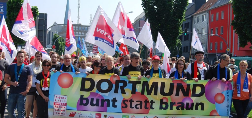 „Die Zivilgesellschaft in Dortmund funktioniert“, resümiert der Arbeitskreis gegen Rechtsextremismus seine Gegendemonstration, an der rund 3000 Menschen teilnahmen. Weitere etwa 2500 Linksautonome waren in der Stadt unterwegs. Anlass war der „Tag der deutschen Zukunft“, zu dem 900 Nazis, und damit weniger als erwartet, aus dem gesamten Bundesgebiet kamen. Die Demo hatte Michael Brück angemeldet, der für die Partei „Die Rechte“ im Dortmunder Stadtrat sitzt.