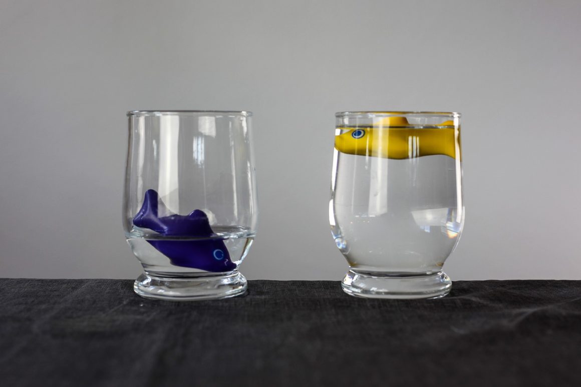 2 Wassergläser mit Fischen