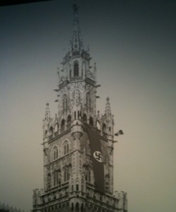 München die Hauptstadt der Braunen. Die Feldherrnhalle war eine zentrale Kultstätte der Nazis, wer sie passierte, musste mit den rechten Arm zum Hitler-Gruß heben oder er musste mit Problemen rechnen. Das Hofbräuhaus war das Stammlokal der Nazis, hier wurde ihr Programm verkündet, das Pressehaus des „Völkischen Beobachters“ stand in der Schellingstraße, Studenten der Uni werden wissen, dass diese feine Adresse gleich in der Nähe der Hochschule ist. Hitlers „Mein Kampf“, gerade neu kommentiert, eingeordnet und verlegt, wurde in der Nähe des Isartors verlegt.
