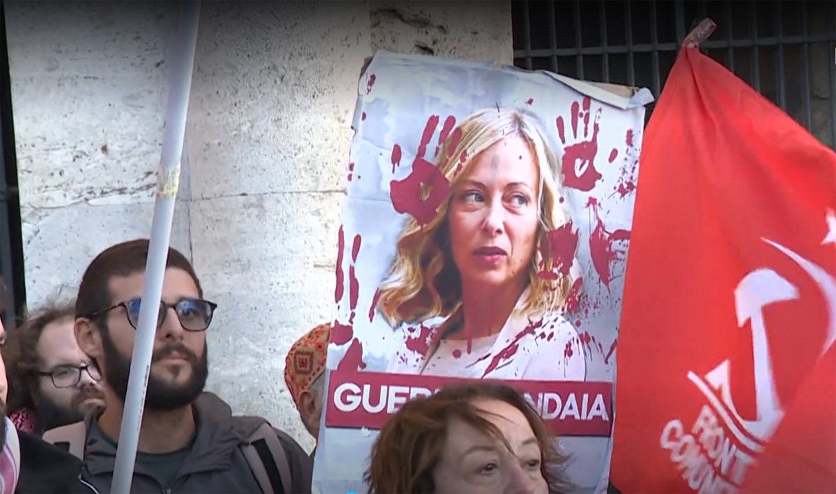 Anders ging es heute in Italien zu. Nachdem vier Italiener bei der Seeblockade vor dem Gazastreifen verhaftet wurden, wuchs die Solidarität mit ihnen im Land und wurden Demos organisiert. Ohne lang darüber nachzudenken, was sie wirklich dort taten. Das passte nicht zu den Vorstellungen der aktuellen faschistischen Regierung. Präsidentin Meloni, die man neulich in Kopenhagen Hand in Hand mit Ungarns Orban auf Photos sehen konnte, hatte wohl nicht damit gerechnet. „Wegen nicht fristgerechter Ankündigung“ drohte sie, die Demos zu verbieten. Die Reaktion mancher Gewerkschaften war blitzschnell: Generalstreik!