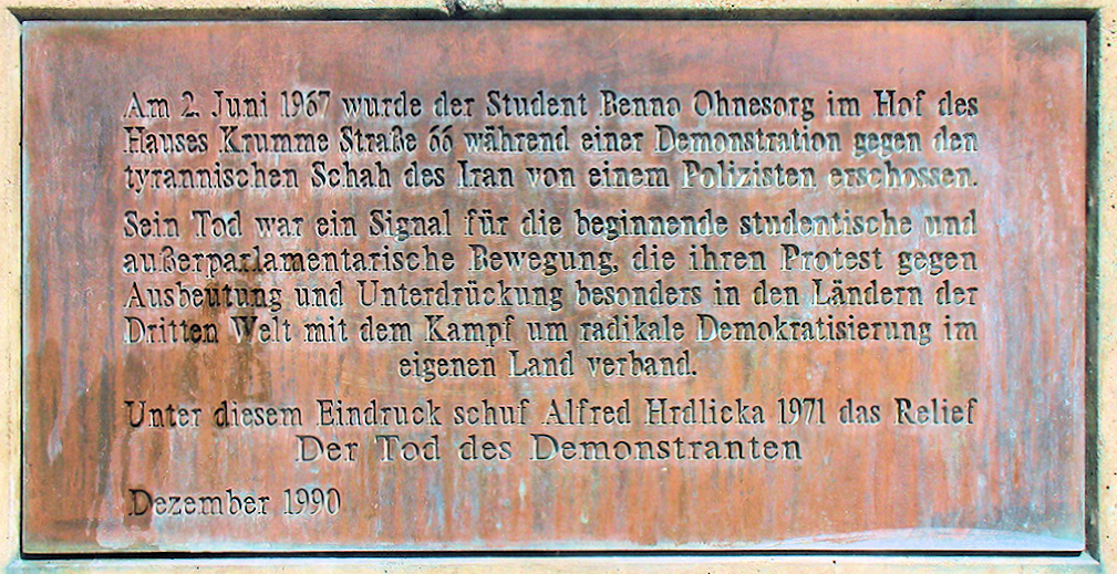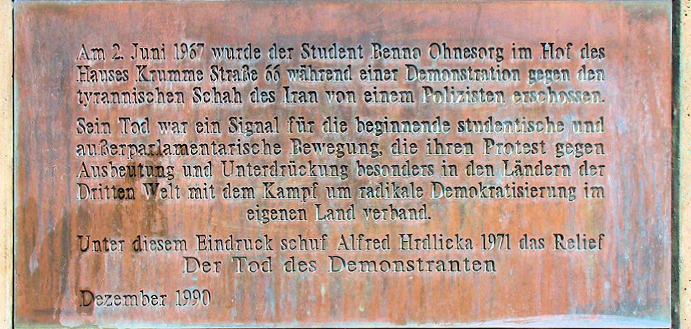 Die Revolte der 68er hatte tatsächlich ihren Ausgangspunkt an diesem 2. Juni 1967. Der Tod von Benno Ohnesorg brachte eine tiefe Spaltung der Gesellschaft und neben der Trauer um ihn wütende Proteste, die sich auch gegen den Springer-Verlag und vor allem gegen die Agitation der Bild-Zeitung richtete. Nicht nur die Polizei mischte mit Wasserwerfern und Hundestaffeln den weitgehend friedlichen Protest auf, zugleich waren es als Zivilisten getarnte Geheimagenten des Shah, die ebenfalls auf die Studenten einprügelten.