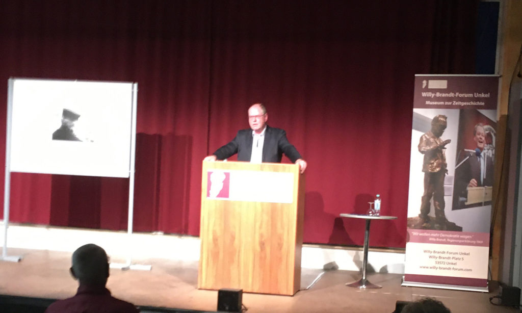Steinbrück kennt Helmut Schmidt sehr gut, er hat im Kanzleramt gearbeitet, ihn dort erlebt, hat viele Gespräche mit ihm geführt über Gott und die Welt, über die Politik, ihre SPD, die Republik, Europa, China. In Unkel, dem letzten Wohnort von Willy Brandt, wo auch das sehr schöne Willy-Brandt-Forum zu Hause ist, ausgerechnet dort gab Peer Steinbrück, der Vorsitzender des Kuratoriums der Bundeskanzler-Helmut-Schmidt-Stiftung ist, den Schmidt-Versteher und -Erklärer und führte damit in eine Foto-Ausstellung ein, die an den Hanseaten, den Staatsmann und Weltbürger, der Schmidt war, erinnert. Dies vorweg: Es war ein Genuß, dem früheren NRW-Ministerpräsidenten, Bundesfinanzminister und gescheiterten SPD-Kanzlerkandidaten zuzuhören. Eine freie Rede über viele spannende Minuten durch den Schmidt-Bewunderer Steinbrück, der aber nicht vergaß, die Schwächen und Fehler dieses großen Mannes aufzuzeigen.