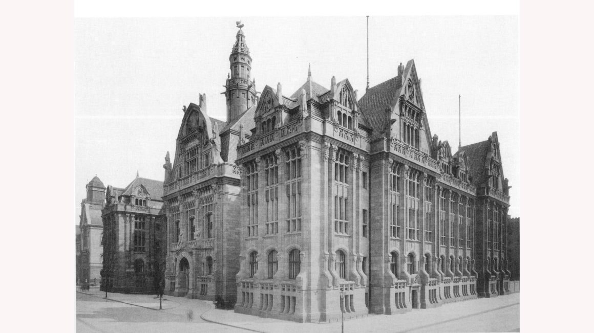 Die den fünfziger Jahren abgerissene Stadthalle in Münster im Jahr 1945