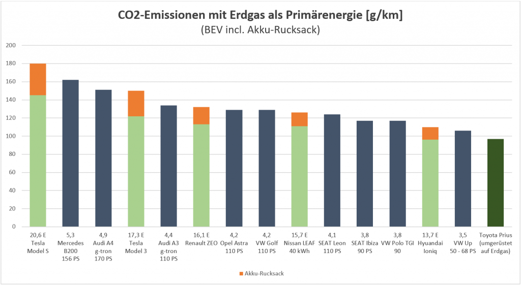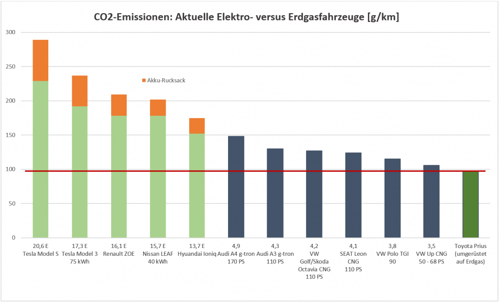 Somit verringert Erdgas die CO2-Emissionen des Elektroautos um den Faktor