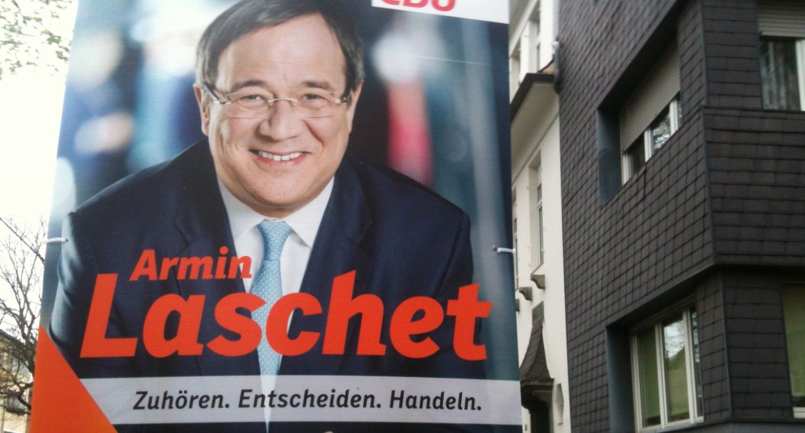 Muss sich des Vorwurfs der SPD erwehren, Gerhard Schröders Wahlkampfmotto 1994 abzukupfern: Armin Lachet. Zuhören. Entscheiden. Handeln