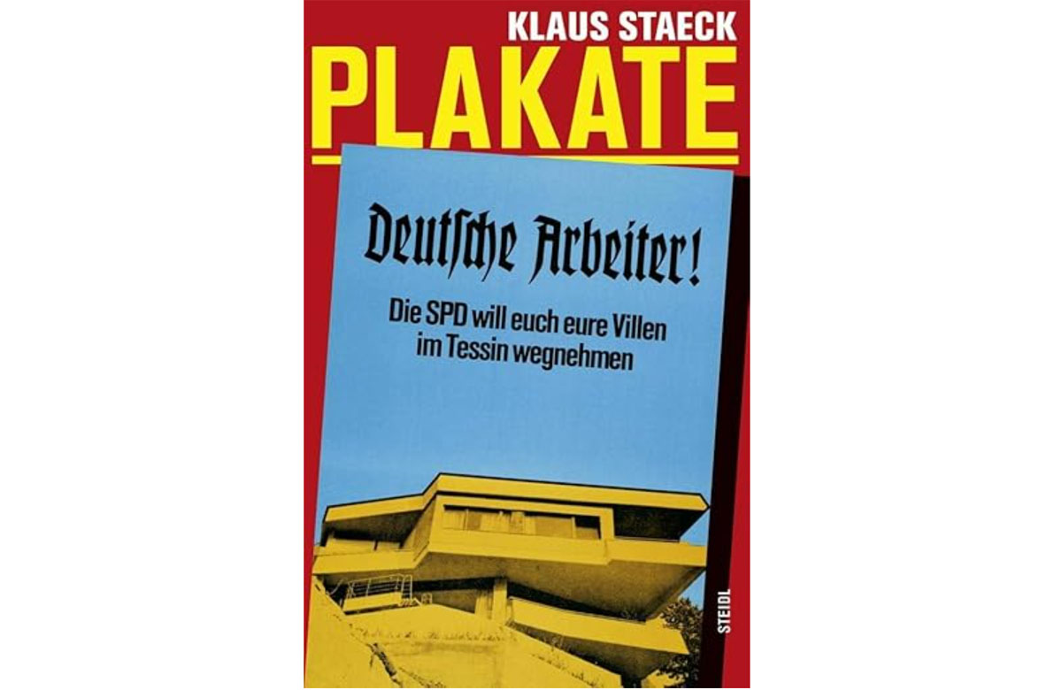 Bildquelle: Buchtitel „Plakate“ von Klaus Staeck. Das auf dem Buchtitel abgebildete Plakat „Deutsche Arbeiter! Die SPD will Euch eure Villen im Tessin wegnehmen“  findet sich in der Edition Staeck.