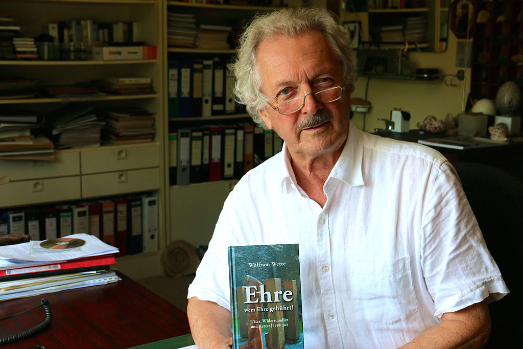 Unser Gastautor Prof. Dr. Wolfram Wette, geboren 1940, Historiker. Von 1971 bis 1995 arbeitete er am Militärgeschichtlichen Forschungsamt (MGFA) in Freiburg im Breisgau, ab 1998 Professor für Neueste Geschichte am Historischen Seminar der Universität Freiburg. Er ist Mitbegründer des Arbeitskreises Historische Friedensforschung (AHF) und Mitherausgeber der Reihe „Geschichte und Frieden“ sowie des Jahrbuchs „für Historische Friedensforschung“.