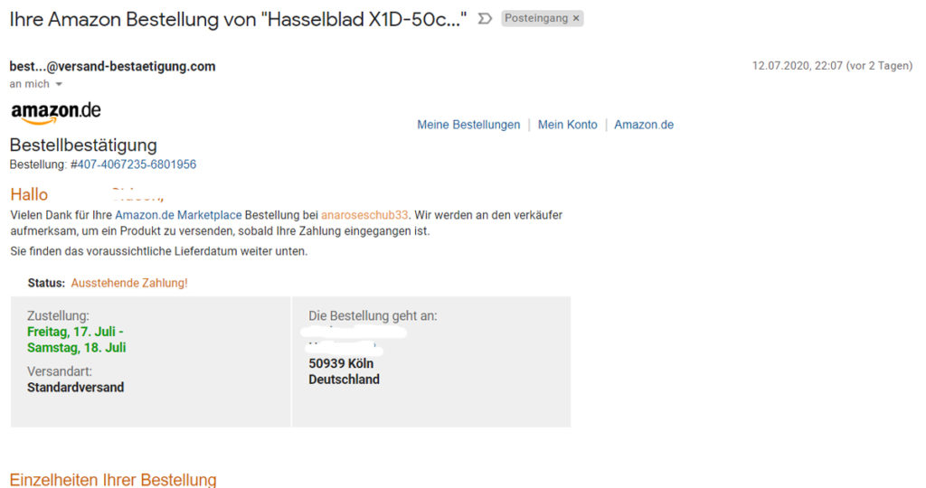 Verwendet werden bei den betrügerischen Abläufen Mailadressen von Shop-Domains mit Phantasienamen, ganz überwiegend aus dem Bereich der .de-Domains, in Einzelfällen auch .store- oder .shop-Adressen. Wer die Domain registriert hat, lässt sich nicht verfolgen, da bei fast allen betrügerischen Shops ein amerikanischer Billiganbieter für die Registrierung von Domains, Namecheap, der – wie praktisch – direkt auch eine Anonymisierungsservice für Registrierungen „WhoisGuard“ anbietet. Die Spur endet dann bei einem Büro des Registrars in Panama. Die Kosten für betrügerische Domains sind bei solchen Discountern übersichtlich: Ab ca. 1 Dollar pro Jahr je Domain! Eine gewinnbringende „Investition“. Manchmal werden Domains mehrfach genutzt, oft aber nur einmalig und erst kurz vor der „Übernahme“ eines Shops bestellt und nur für kurze Zeit aktiviert. Dabei geht es nur um die Kontakt-Mailadressen zu den vermeintlichen Amazon-Shops. In einzelnen Fällen werden auch Gmail-Adressen genutzt, da Google ebenfalls für Kriminelle einen sicheren Schutz bietet. Schließlich kann dort jeder unter nahezu jeden denkbaren Phantasienamen – kostenlos – Mailkonten eröffnen. Die gefälschten Versandbestätigungen werden über meist über separat abgesicherte Domains, z.B. über den, ebenfalls amerikanischen, Dienst Domains by Proxy, versendet. Cyberkriminelle achten besonders auf Sicherheit.