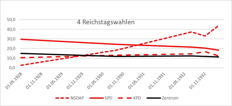 Auch die NSDAP erhielt bei den Reichstagswahlen 1930 nur 18%, mehr hatte