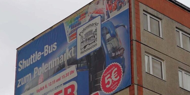 Von der Berliner Stadtgrenze im Osten sind es gut 70 Kilometer bis zum „Polenmarkt Hohenwutzen“, durch einige Baustellen verlängert sich die Fahrtzeit des Shuttle auf mehr als 90 Minuten. „Alles aussteigen“, lautet die Durchsage, als der Bus sein Ziel erreicht hat. Die Leute lassen sich nicht lange bitten, einige von ihnen wollen schon in etwas mehr als einer Stunde wieder zurück. Die meisten Marktbesucher wissen Bescheid, wo sie kriegen, was sie suchen. Wer sich unter den 750 Ständen (200 davon überdacht in einer beheizbaren Halle) erst einmal orientieren muss, lässt sich mehr Zeit – der letzte Bus nach Berlin geht um 17 Uhr. Und das alles sieben Tage die Woche.