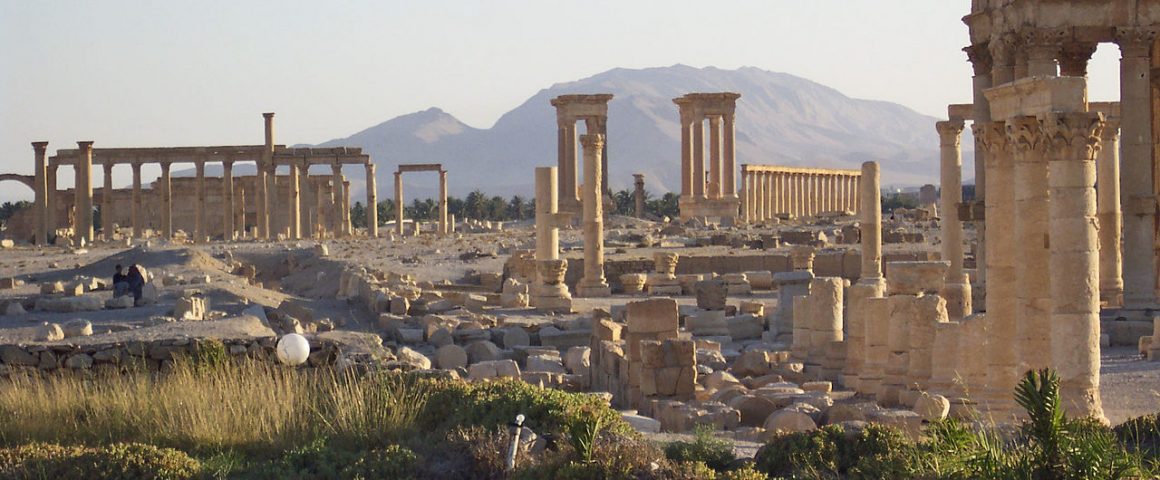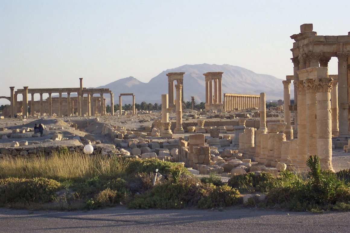 Bildquelle: Wikipedia, Wilhelms – Eigenes Werk, The ruins of Palmyra, Syria, seen from the terrace of the Zenobia Hotel. Baal Shamin temple on the right, Tetrapylon in the center, CC BY-SA 3.0