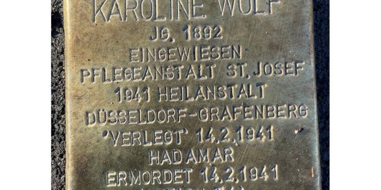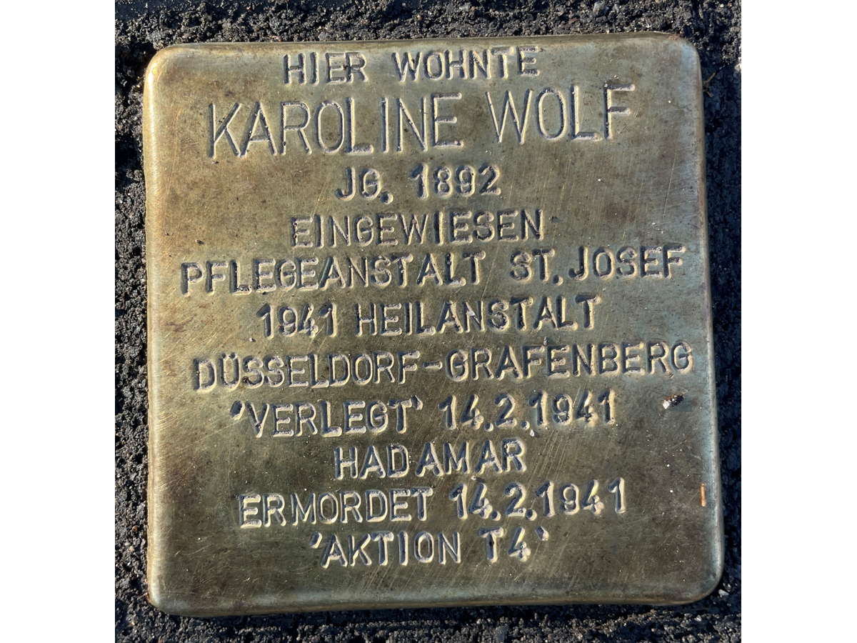 Der Stolperstein für Karoline Wolf – nicht vor einem Wohnhaus, sondern gerade vor dem Gelände einer psychiatrischen Klinik – sollte uns an das Schicksal ihrer ganzen Familie und die Leiden der anderen Patientinnen und Patienten erinnern, die in diesen und anderen Anstalten behandelt – und von dort aus in die Gaskammern geschickt wurden. Das Stolperstein-Projekt verdient mehr als sporadische Aufmerksamkeit, nicht nur anlässlich der Verlegung weiterer Steine. An einem der vier Stellen in Neuss, an denen am 24. Januar 2025 neue Stolpersteine verlegt wurden, waren übrigens Schülerinnen und Schüler von zwei Neusser weiterführenden Schulen in Kooperation mit einer französischen Partnerschule die Paten, die es bei derartigen Verlegungen gibt. Sie hatten akribisch das Schicksal einer Familie recherchiert, an die erinnert werden sollte – ein gutes Zeichen und ein Beleg dafür, dass die oben erwähnte vierte Generation durchaus bereit ist, sich für derartiges zu interessieren und zu engagieren.