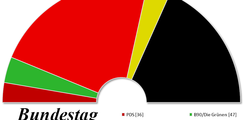 20 Jahre ist das her. Die Bundestagswahl 1998 und in der Folge die erste rot-grüne Bundesregierung, die Gerhard Schröder und Joschka Fischer bildeten. Genau am 27. September 1998 gewann die SPD nicht ganz überraschend die Bundestagswahl mit 40,9 Prozent der Stimmen. Die Union mit dem Dauerkanzler Helmut Kohl kam nur noch auf 35,1 Prozent. Die Grünen hatten leichte Verluste, aber mit 6,7 Prozent reichte es für Rot-Grün, knapp dahinter landeten die Liberalen mit 6,2 Prozent. Es war das zweite Mal in der Geschichte der Bundesrepublik, dass die SPD stärkste Fraktion im Bundestag wurde, Bundestagspräsident wurde Wolfgang Thierse, ein Ostdeutscher. Übrigens soll Schröder zunächst an eine große Koalition gedacht haben, aber dann schafften die Grünen den Einzug ins Parlament.