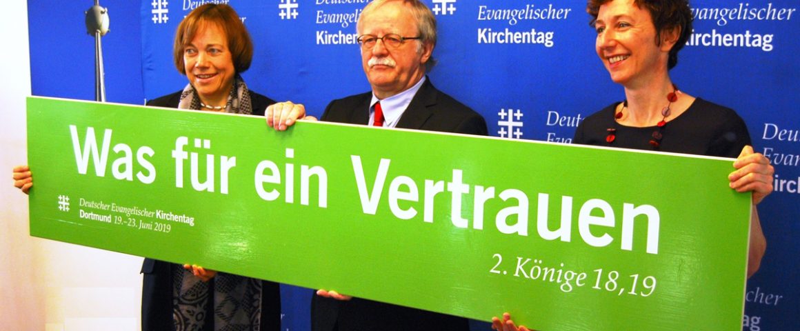In dieser Funktion stellte er gemeinsam mit der Präses der Westfälischen Landeskirche, Annette Kurschus, und der Generalsekretärin des Kirchentages, Julia Helmke, am 16. Oktober im Rahmen einer Pressekonferenz in Dortmund die Losung des nächsten Kirchentages vor: „Was für ein Vertrauen“, ein Zitat aus dem Alten Testament, 2. Buch der Könige 18,19. Das ist in der an sperrigen Losungen reichen Geschichte der Kirchentagsbewegung wieder einmal ein Motto, das sich a priori nicht gleich erschließt, sondern der Erklärung bedarf. Dann aber erscheint allmählich ein Bild des Dortmunder Laientreffens in knapp zwei Jahren. Die Prognose sei gewagt, dass wir auf einen wieder politischen Kirchentag zugehen. Und das ist auch gut so.