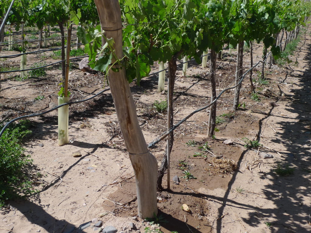 Bei meinen Reisen mit Wasserexperten durch die Trockengebiete von Chile und Argentinien hatte ich persönlich immer wieder Gelegenheit Weine aus regionalem Anbau zu genießen. Insbesondere die Rotweine der Rebsorte Malbec bestachen durch eine herausragende Qualität, was mit Sicherheit auf das günstige subtropische Klima mit viel Sonnenschein und hohen Tagestemperaturen und niedrigen Nachttemperaturen zurückzuführen ist. Bei den Bereisungen fielen die riesigen Weinplantagen auf, auf denen die Weinreben so angebaut werden wie wir es aus den europäischen Weinbaugebieten kennen (vgl. Abb. 3)
