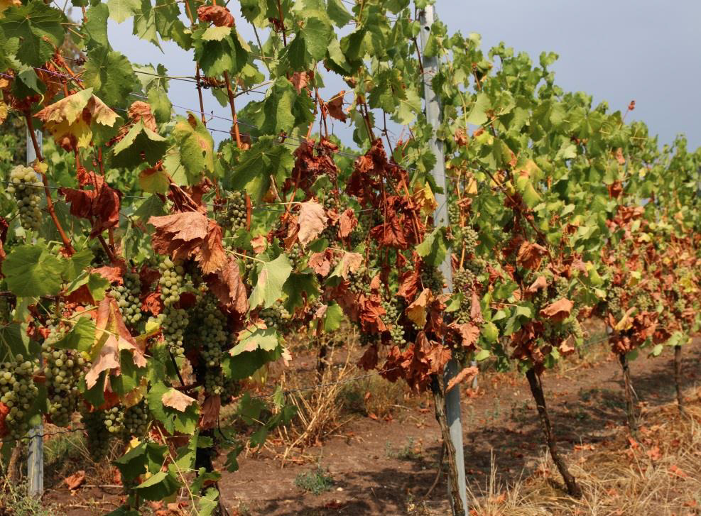 Der Weinbau im mitteleuropäischen Raum ist unter den dortigen humiden Klimabedingungen mit relativ gleichmäßig über die sommerliche Vegetationsperiode verteilten Niederschlägen und mit geringeren Verdunstungsraten weniger trockenstressgefährdet als die mediterranen Weinbauregionen. Weinbau wird daher traditionell ohne Rebenbewässerung betrieben (Heßdörfer 2014) und ist erst seit 2003 rechtlich erlaubt. Die auch in den mitteleuropäischen Weinbauregionen in den letzten Jahren beobachtete Erhöhung der Lufttemperatur um bis zu +2,2 °C sowie Verminderung des Niederschlags während der Vegetationsperiode und dem daraus resultierenden Trend zu mehr Zeiträumen mit Niederschlagsdefizit (z.B. Dürreperiode im Trockenjahr 2018 mit einem Niederschlagsdefizit von -33 % in Sachsen (Köstner, 2021) führten schon in der aktuellen Situation zu einem Anstieg von Wassermangelsituationen im Weinbau. Abb. 2 zeigt dies eindrucksvoll mit einem Foto von Trauben aus dem Sommer 2018 .