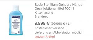 Dort gibt es tatsächlich alles, was die Angst vor dem Virus bekämpfen soll, noch im Überfluss. Allerdings zeigt hier der Kapitalismus 4.0 sein hässliches Gesicht. BlackRock hat wohl auch hier schon die Regie übernommen. De Preise sind explodiert. Das Zehnfache ist hier schon billig. Eine Flasche Desinfektionsmittel gibt es aber auch für fast 10.000 EURO im Angebot. Wer jetzt heimische Vorräte an Sagrotan & Co auf dem Markt bringt, kann damit mehr verdienen als mit den gehyptesten Aktien oder ETFs.  Selbst für unsere Haustiere gibt es mittlerweile Schutzmasken zu kaufen.